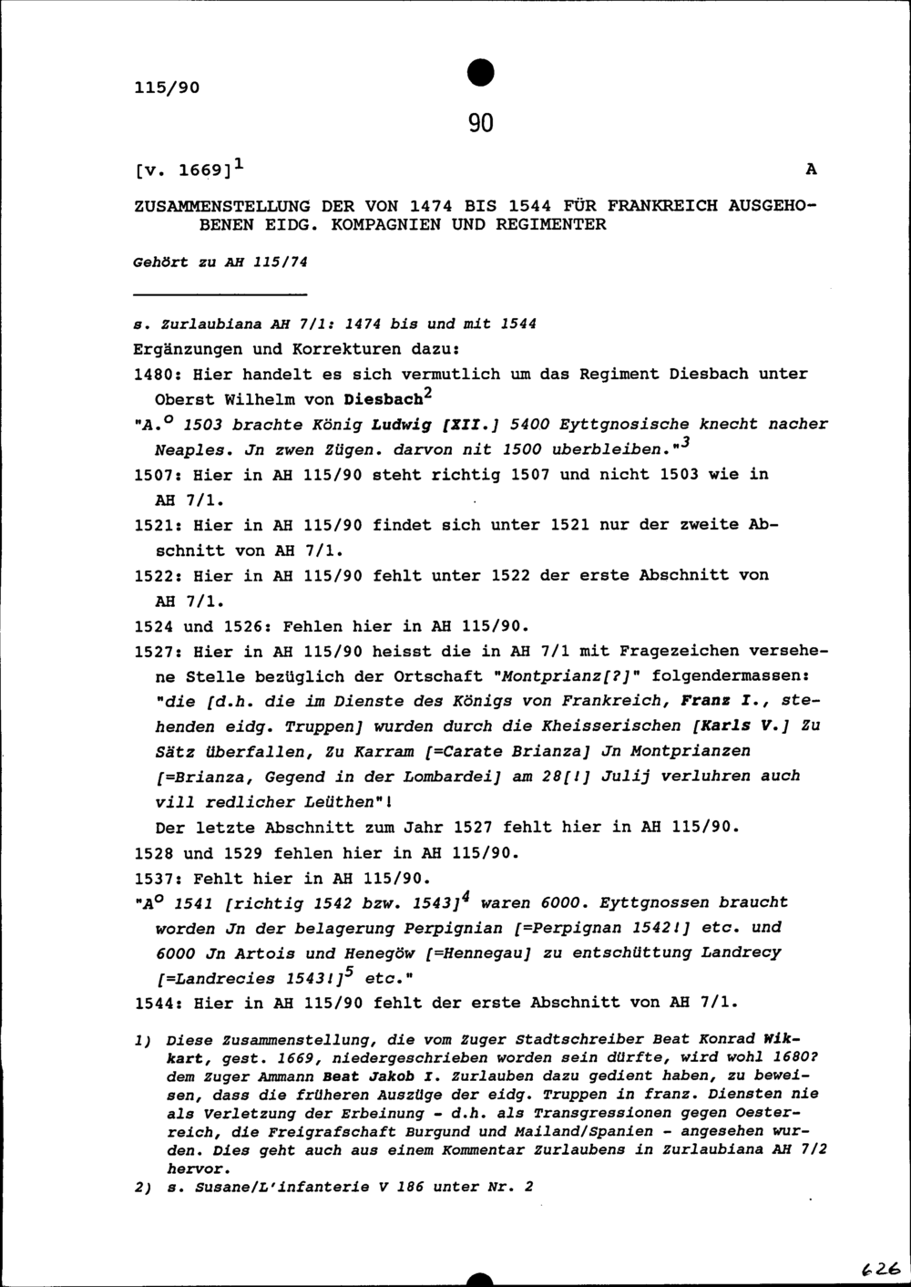 Zusammenstellung der von 1474 bis 1544 für Frankreich ausgehobenen Eidgenössischen...