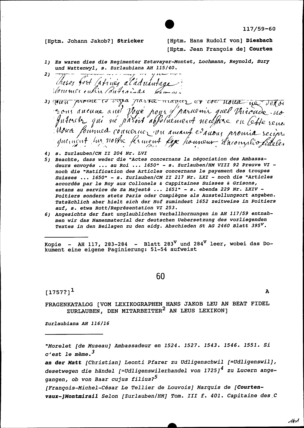 Fragenkatalog von Hans Jakob Leu, Lexikograph, an Beat Fidel Zurlauben