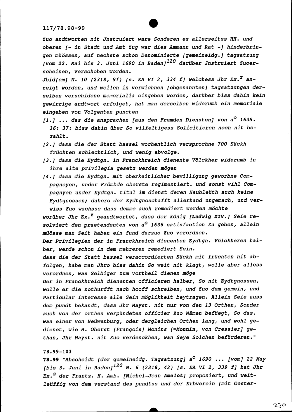 Abschiede in Sachen Frankreich von 1555 bis 1698 (Auszüge)