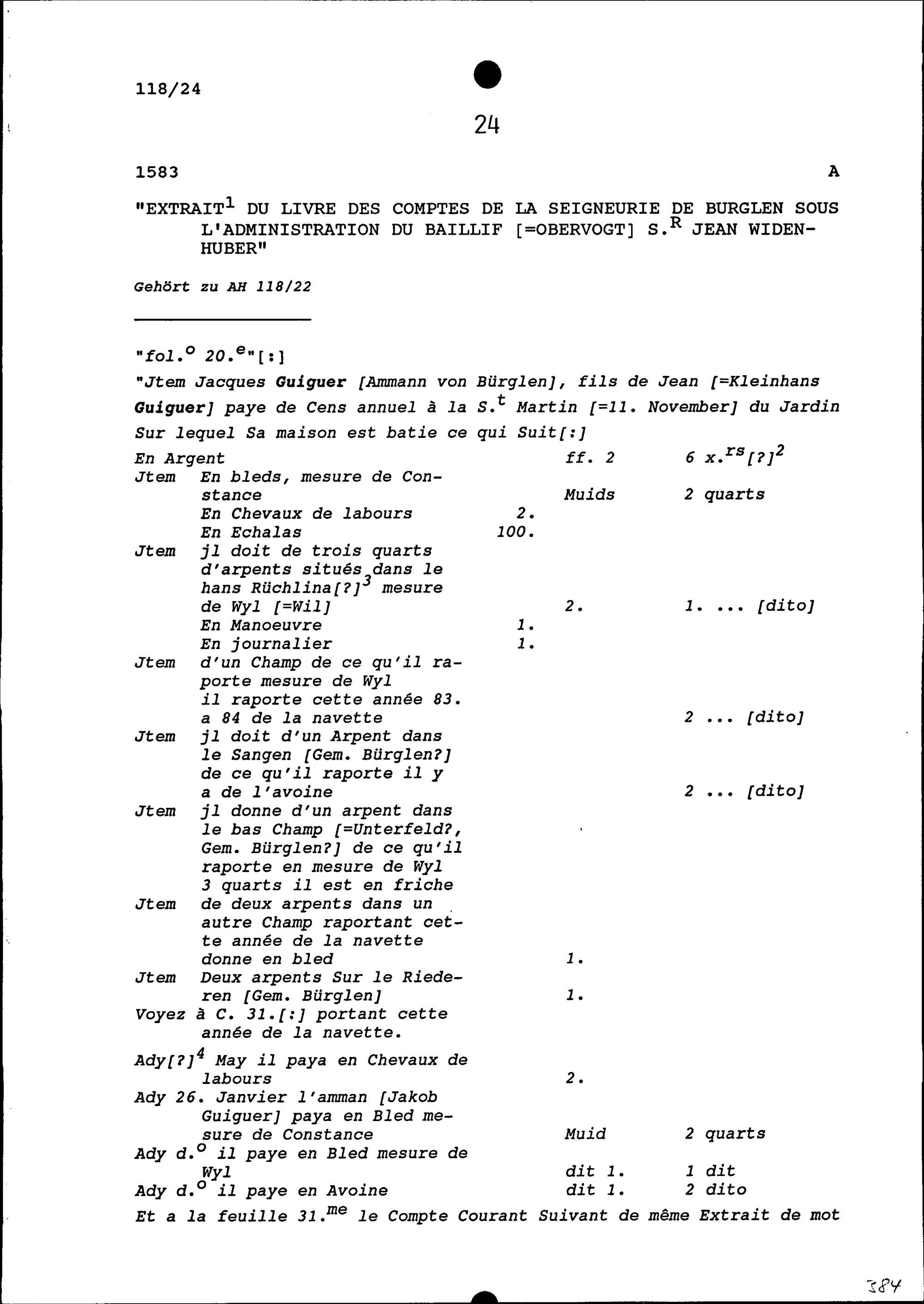 Rechnungsbuch der Vogtei Bürglen unter Hans Widenhuber, Obervogt