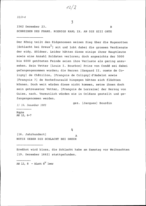 Schreiben von Karl IX., König von Frankreich, an die Dreizehn Orte