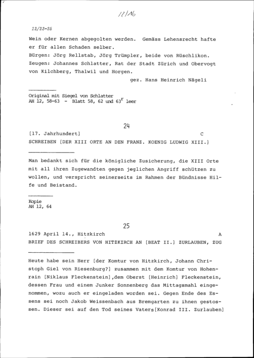 Schreiben der Dreizehn Orte an Ludwig XIII., König von Frankreich