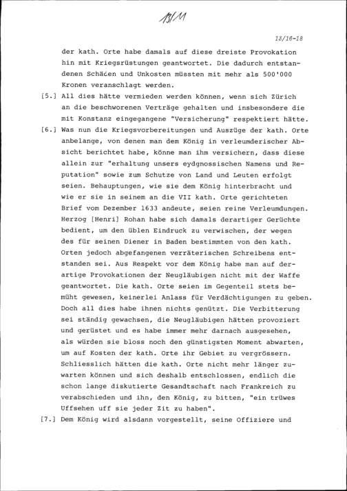 Begehren und Vorschläge der Gesandten der Katholischen Orte und von Pius Reher, Abt von Sankt Gallen, an Ludwig XIII., König von Frankreich, in Senlis