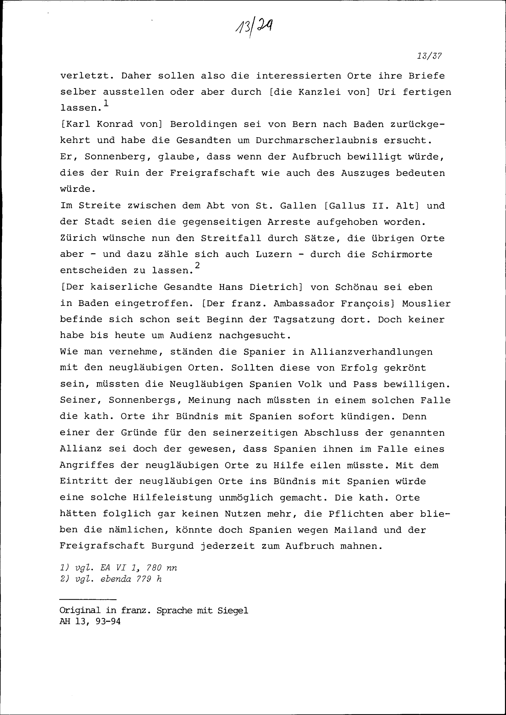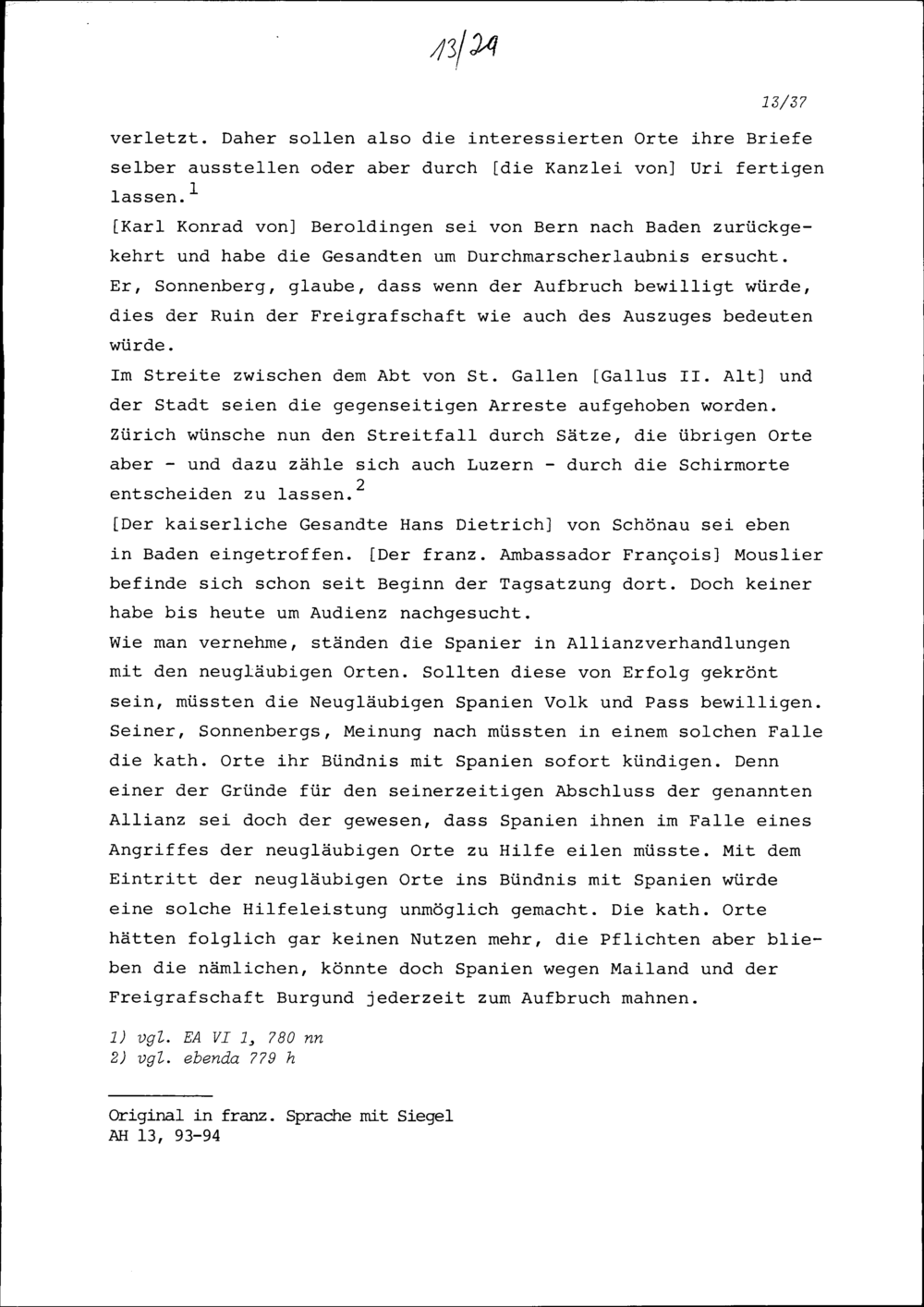 Schreiben von Alfons von Sonnenberg an Beat Jakob I. Zurlauben, Zug