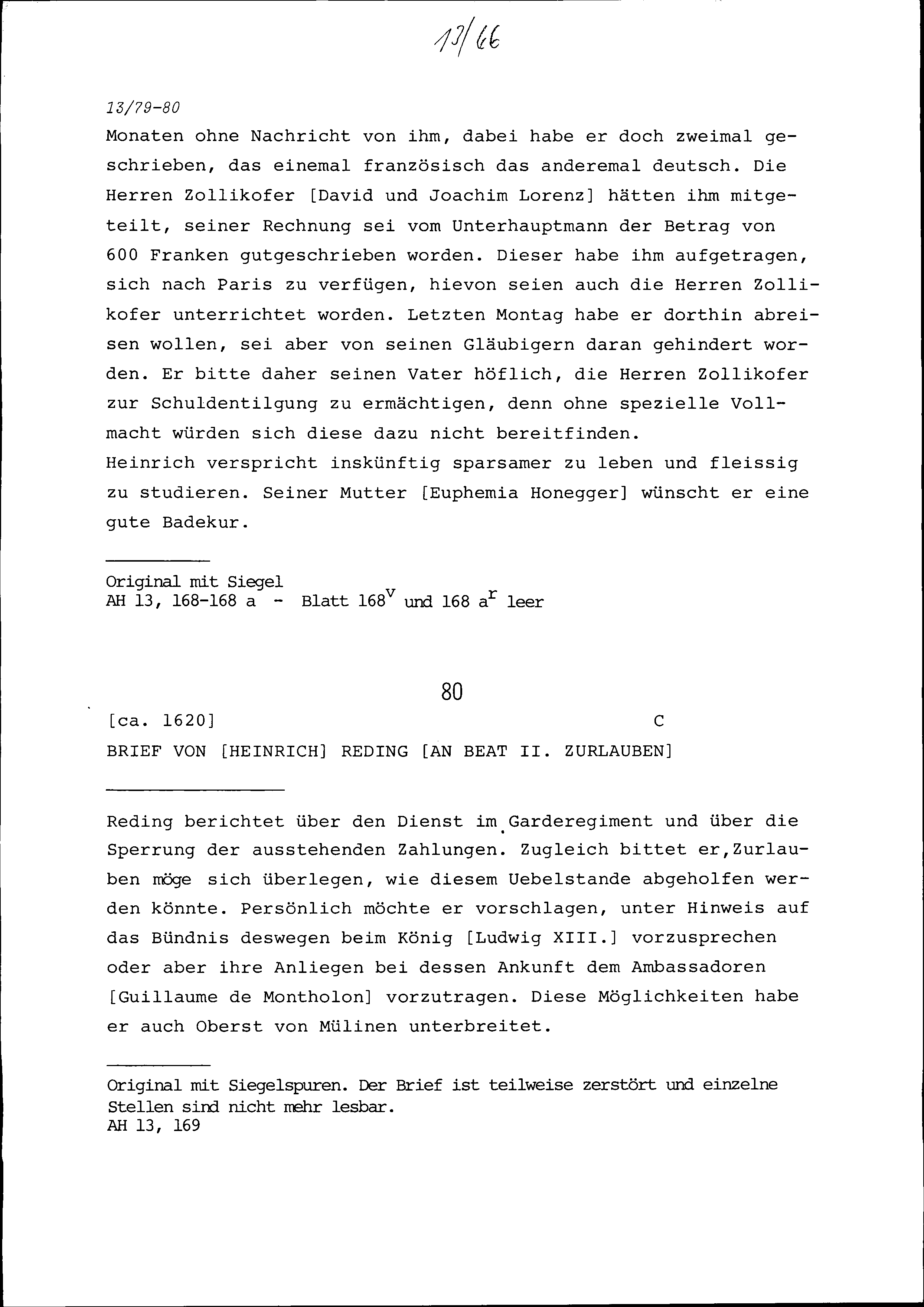 Schreiben von Heinrich Reding an Beat II. Zurlauben