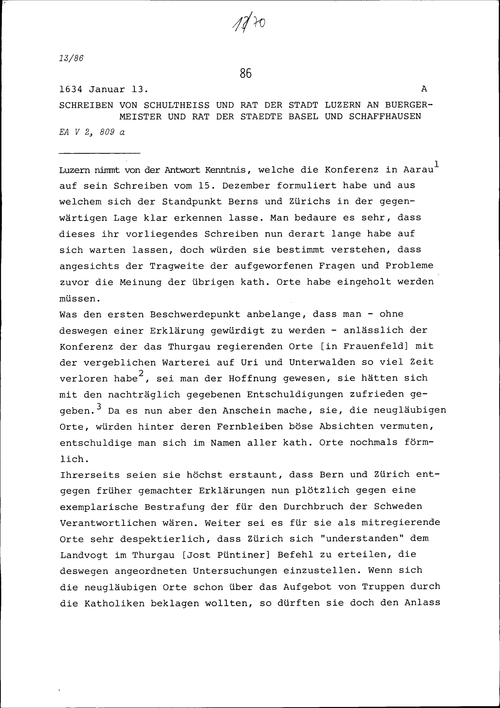 Schreiben des Schultheiss und Rats der Stadt Luzern an Bürgermeister und Rat der Städte Basel und Schaffhausen