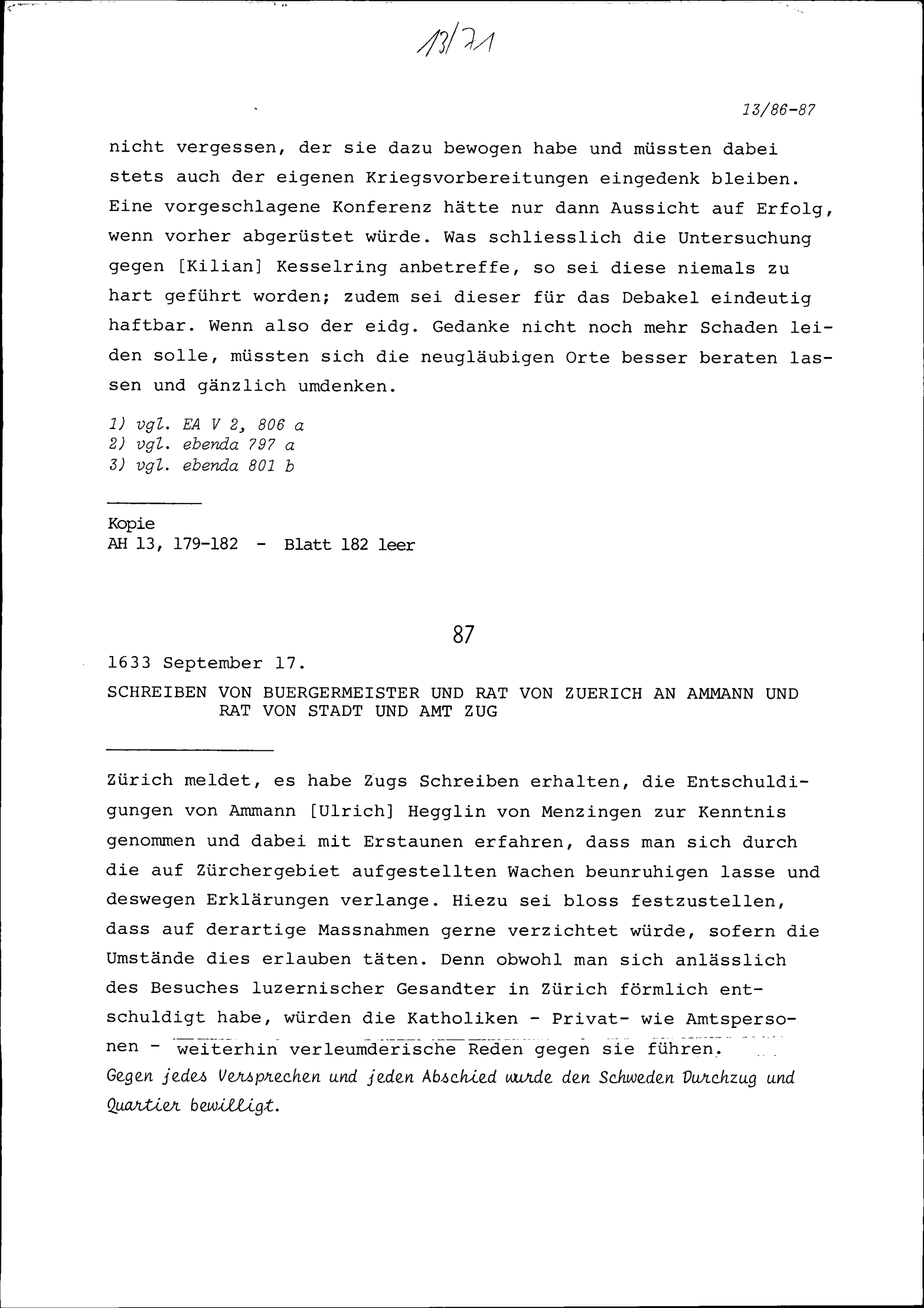 Schreiben des Bürgermeisters und Rats Zürich an Ammann und Rat von Stadt und Amt...