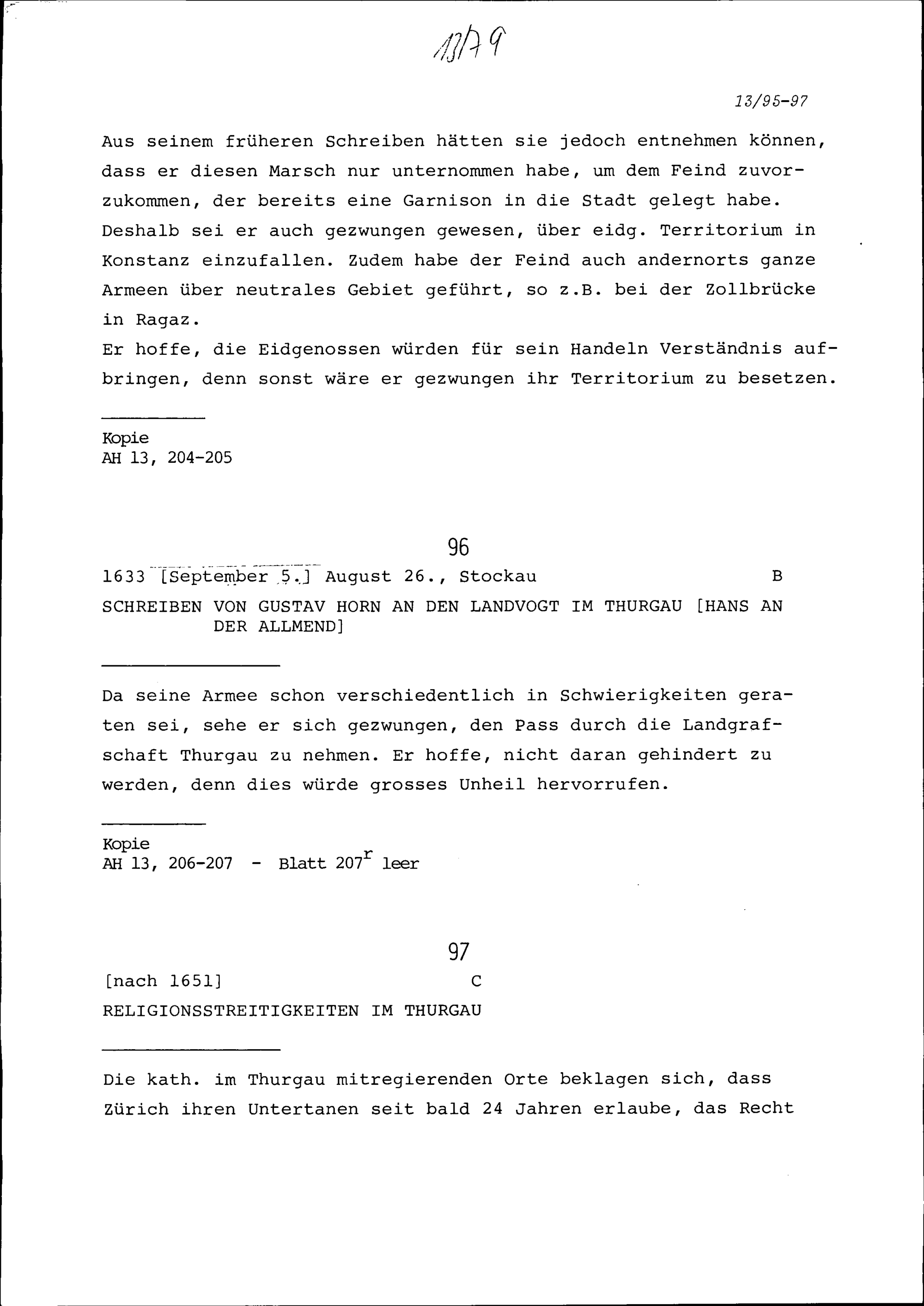 Schreiben von Gustav Horn an Hans an der Allmend, Landvogt im Thurgau