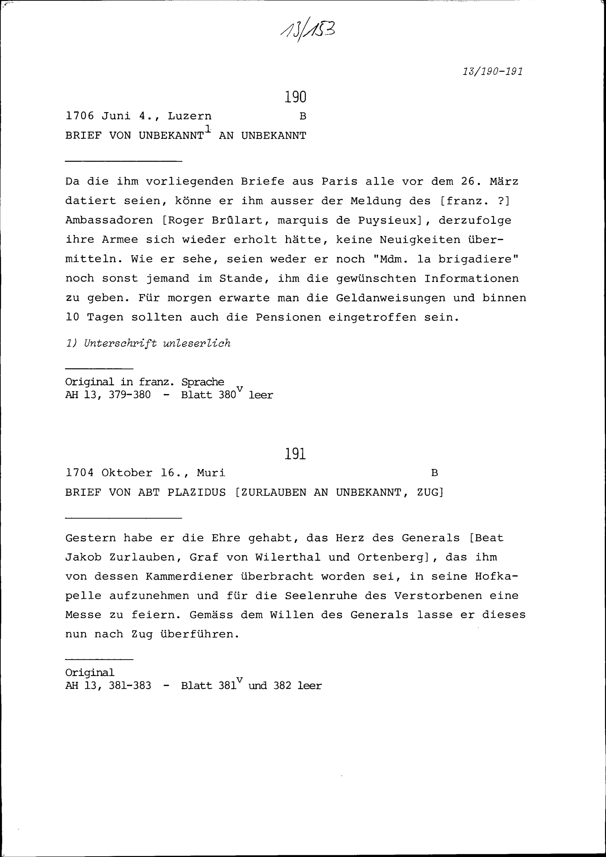 Schreiben von Unbekannt an Unbekannt