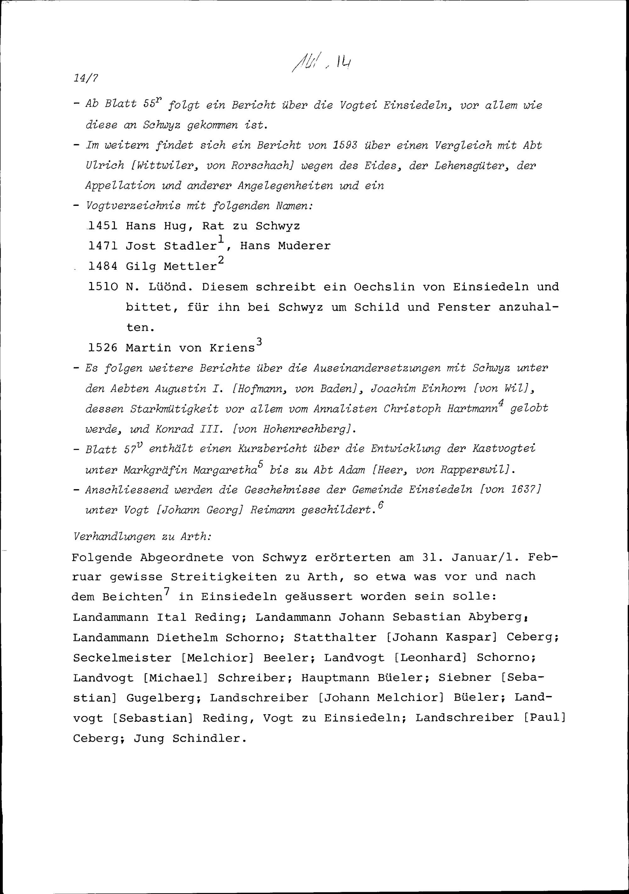 Notiz über die Gründung des Klosters Einsiedeln und dessen Auseinandersetzungen mit Schwyz von 838 bis 1640