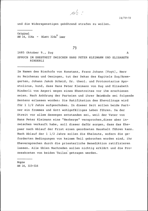 Spruch im Ehestreit zwischen Hans Peter Kleimann und Elisabeth Rinderli
