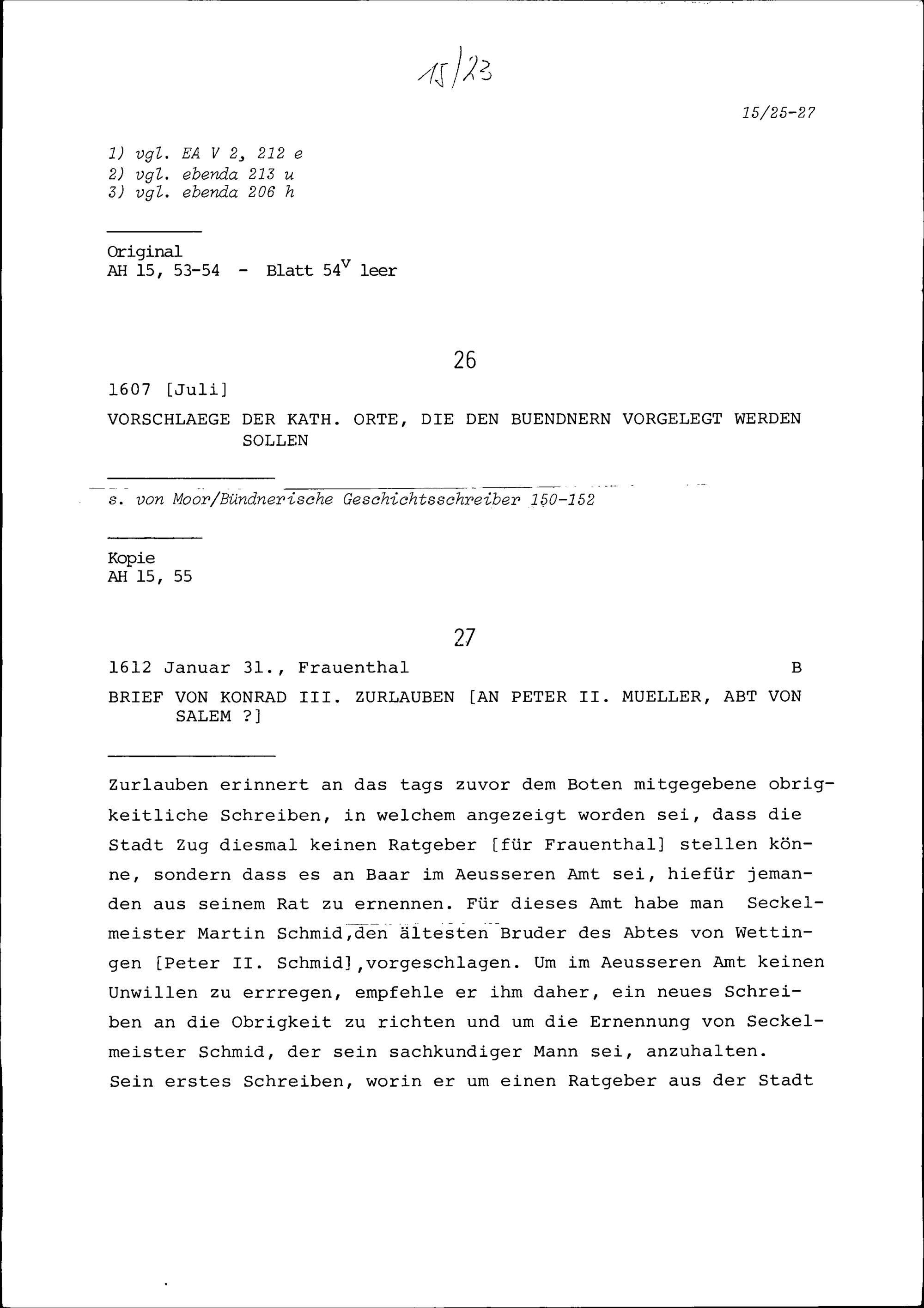 Vorschläge der Katholischen Orte, die den Bündnern vorgelegt werden sollen