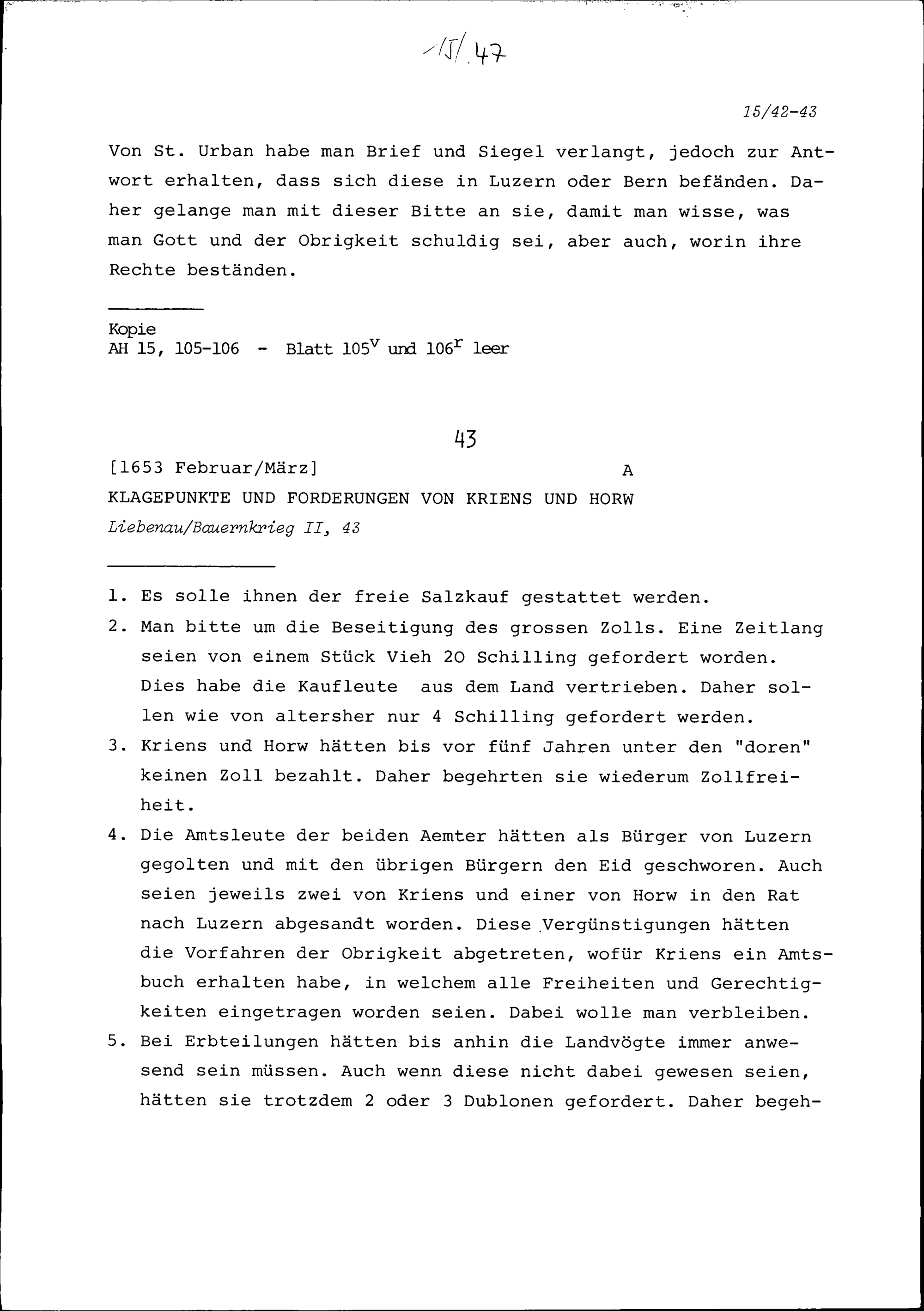 Klagen und Forderungen von Kriens und Horw