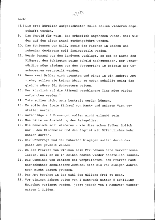 Klagen und Forderungen von Büron und Triengen