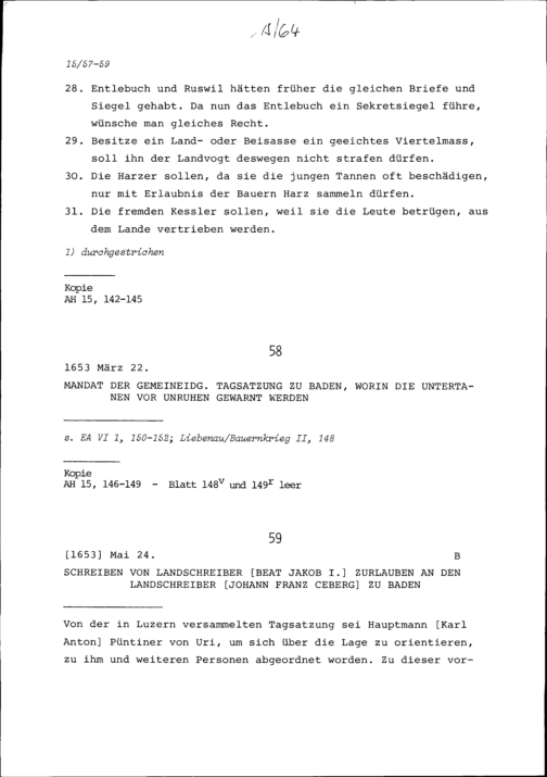 Mandat der Tagsatzung in Baden, worin die Untertanen vor Unruhen gewarnt werden