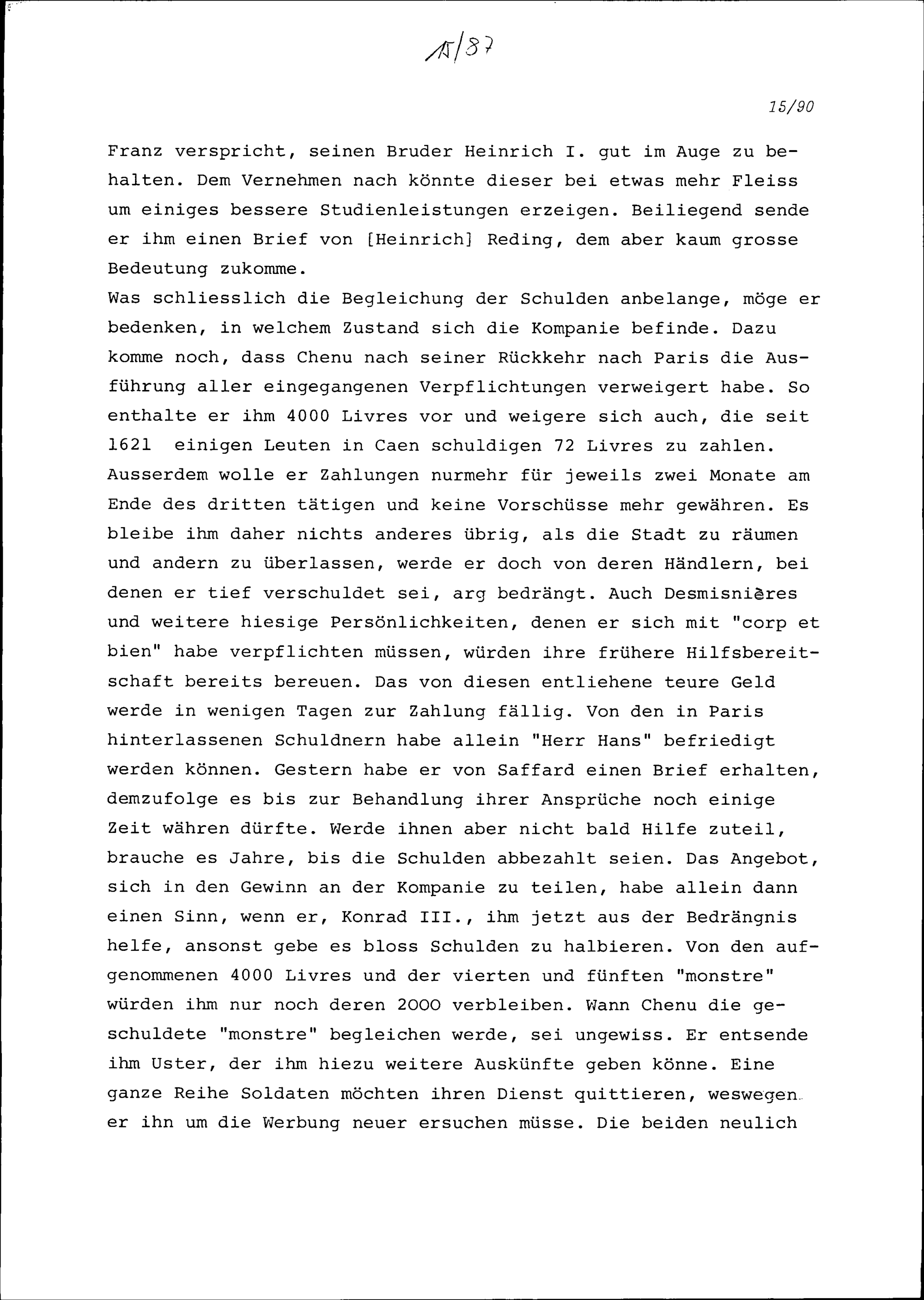 Schreiben von Franz Zurlauben an Konrad III. Zurlauben, Zug