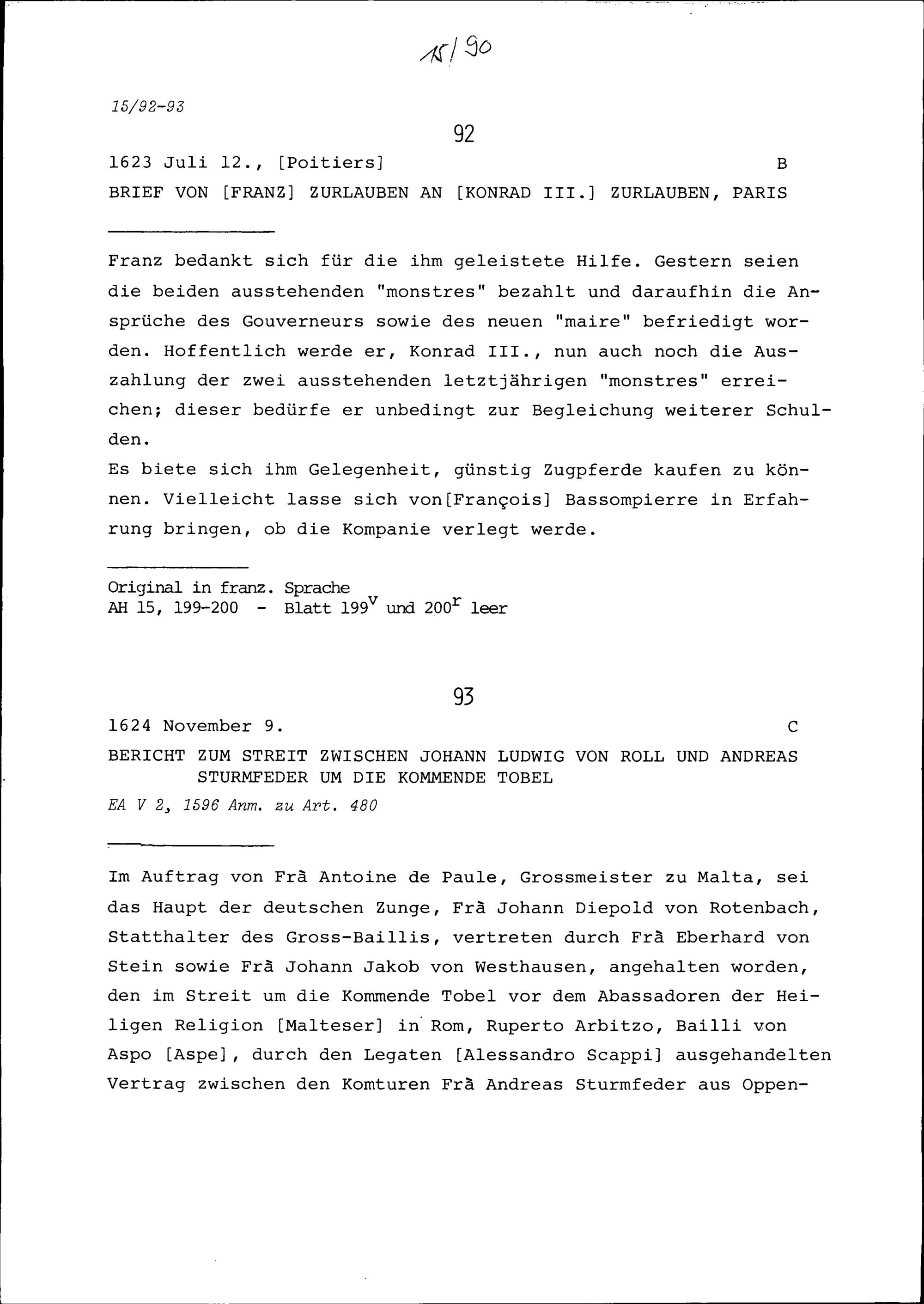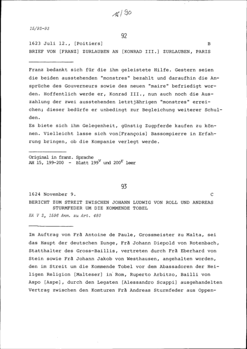Schreiben von Franz Zurlauben an Konrad III. Zurlauben, Paris