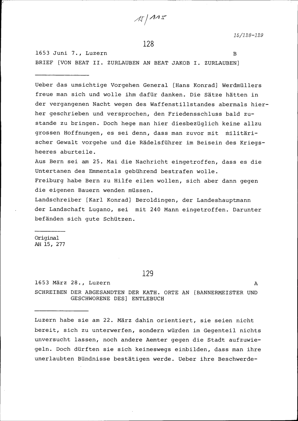 Schreiben von Beat II. Zurlauben an Beat Jakob I. Zurlauben