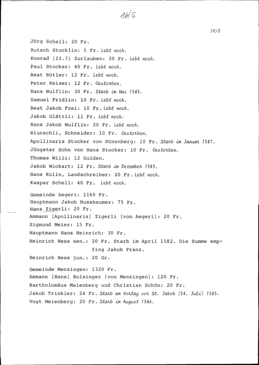 Pensionenrodel von Stadt und Amt Zug