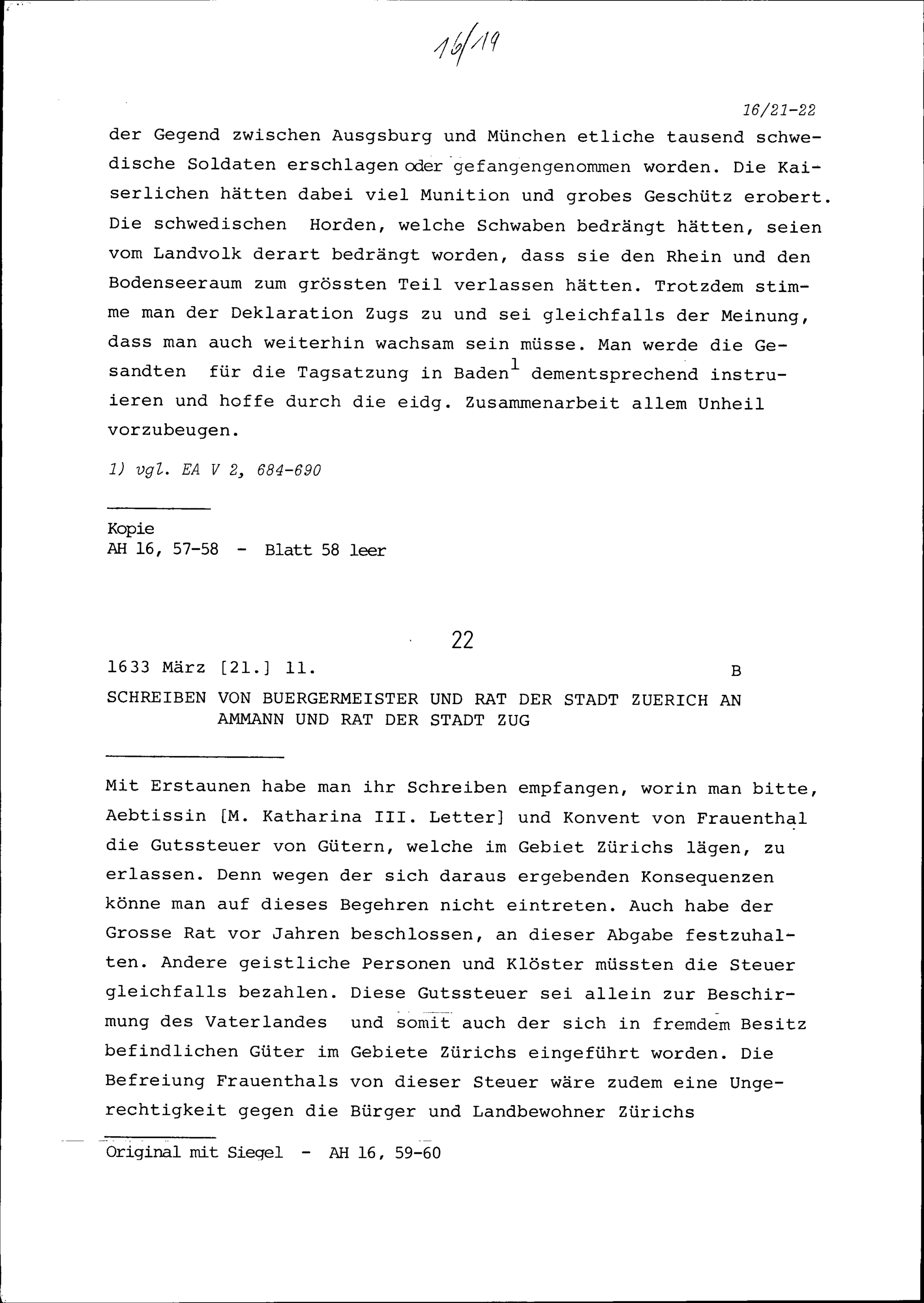 Schreiben des Bürgermeisters und Rats der Stadt Zürich an Ammann und Rat der Stadt...