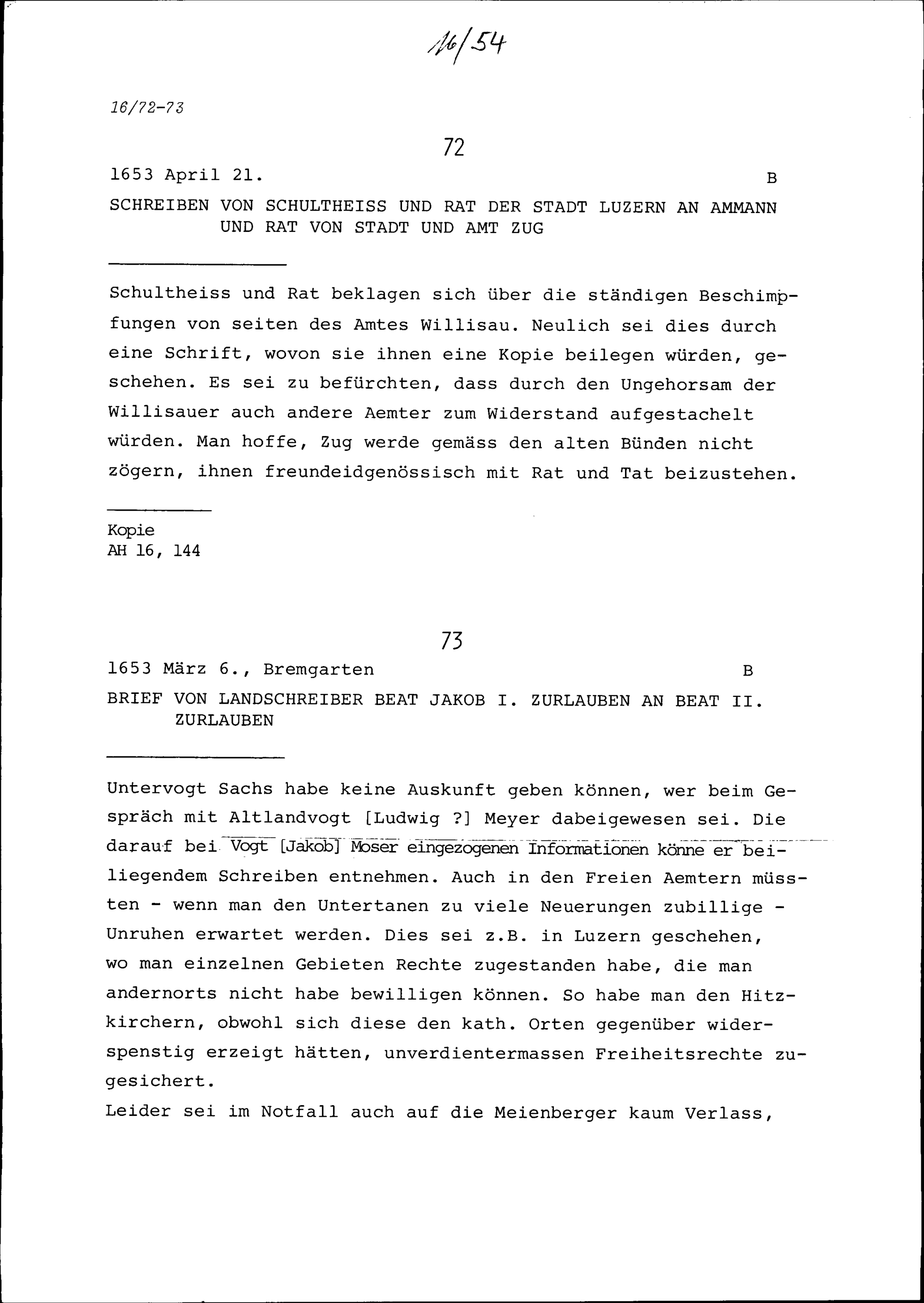 Schreiben des Schultheiss und Rats der Stadt Luzern an Ammann und Rat von Stadt und...