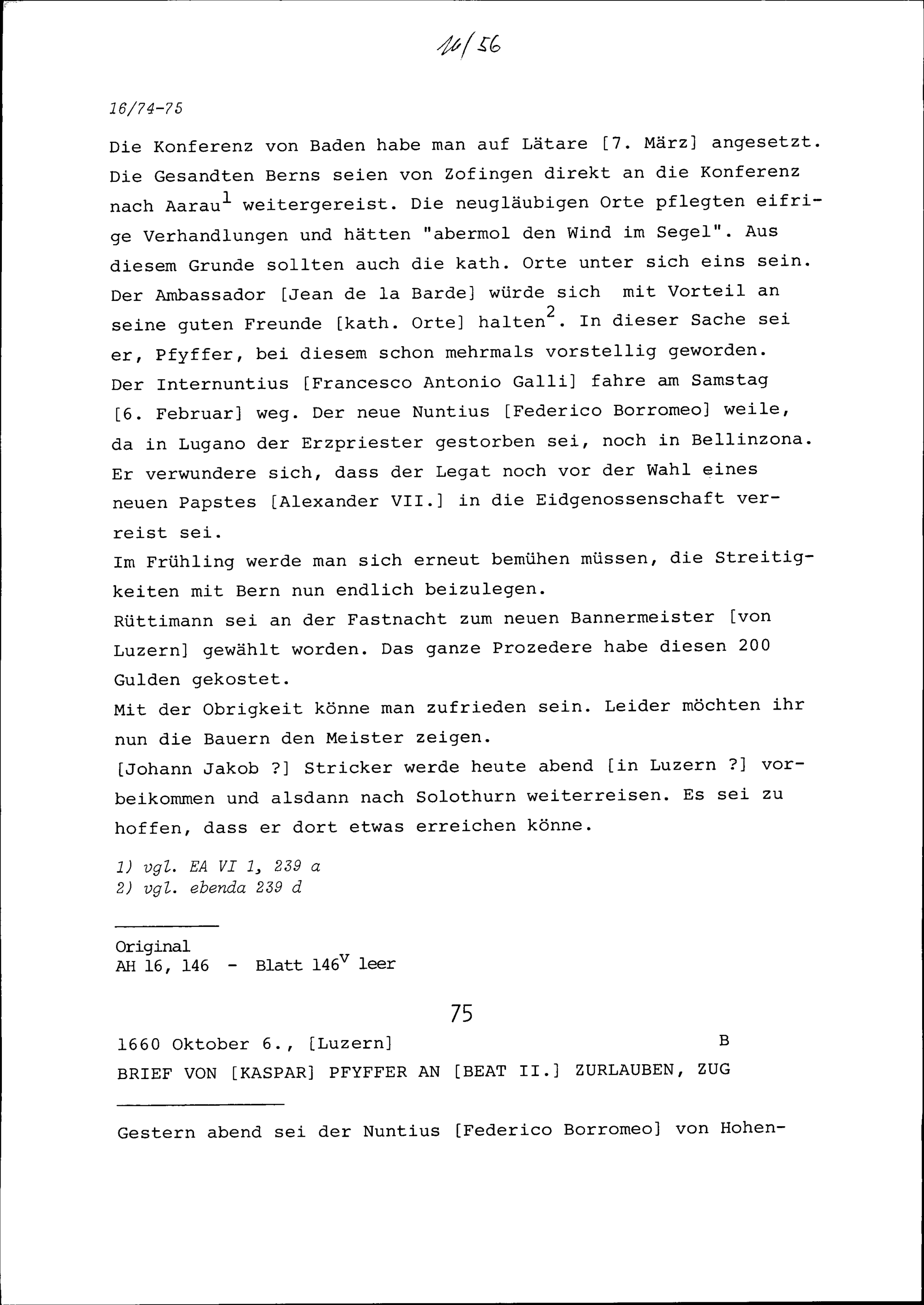 Schreiben von Kaspar Pfyffer an Beat II. Zurlauben, Zug