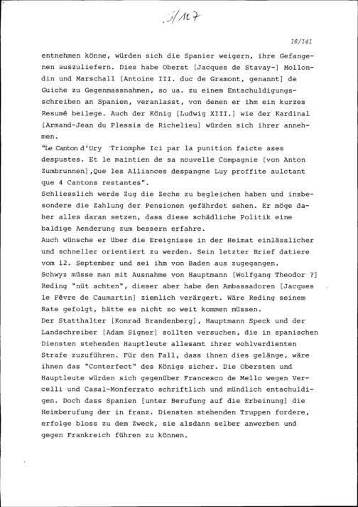 Schreiben von Heinrich I. Zurlauben an Beat II. Zurlauben, Zug