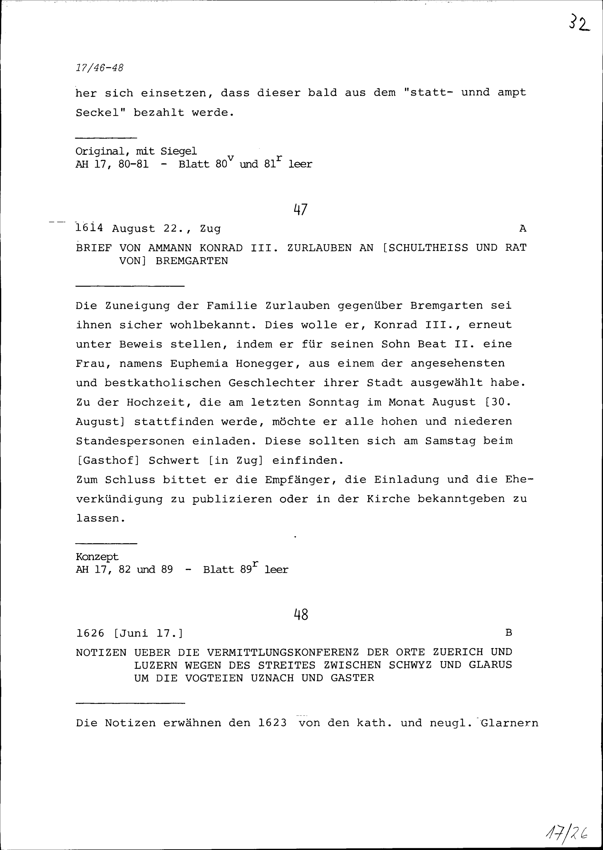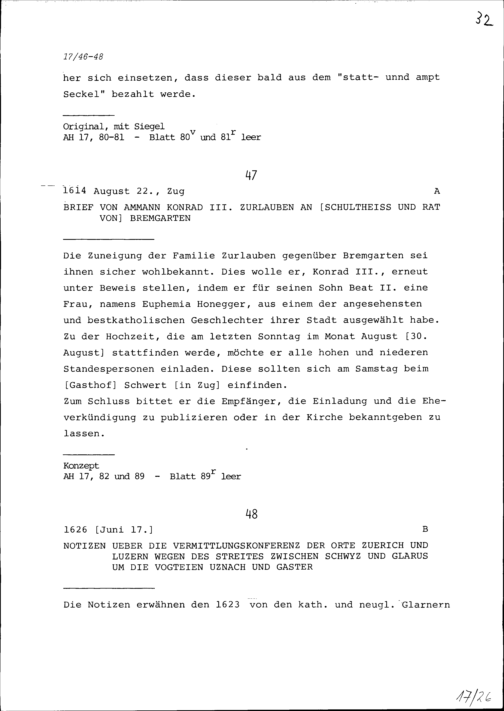Schreiben von Konrad III. Zurlauben, Ammann, an Schultheiss und Rat von Bremgarten