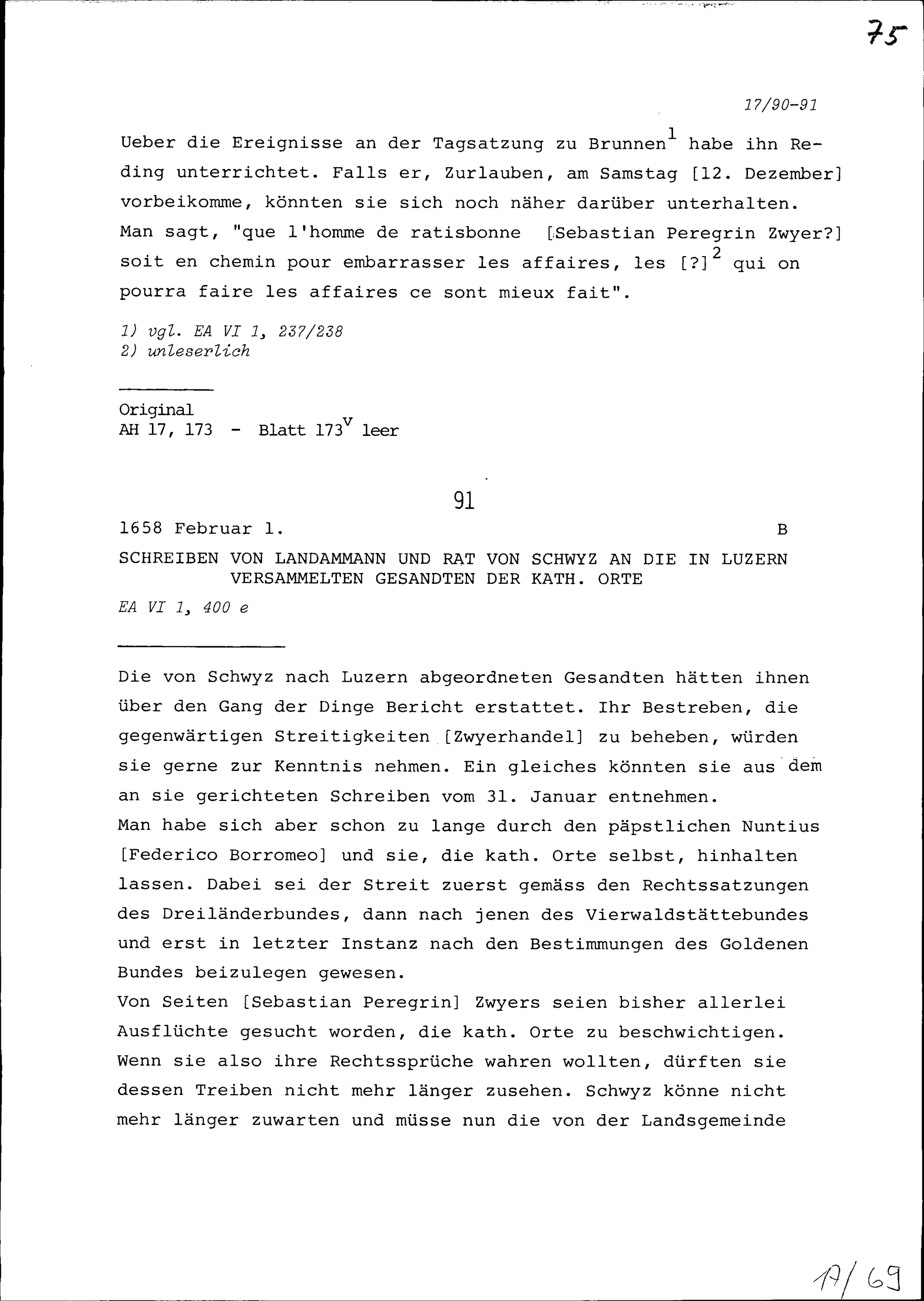 Schreiben des Landammanns und Rats von Schwyz an Gesandten der Katholischen Orte...