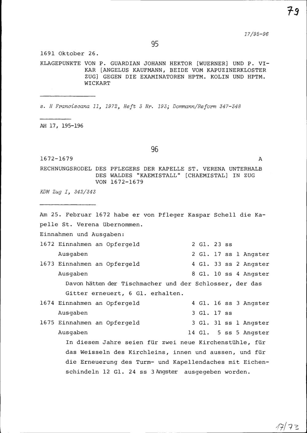 Klagen von Johann Hektor Würner, Kapuzinerpater und Guardian, und von Angelus Kaufmann, Kapuzinerpater und Vikar, beide Kloster Zug, gegen NN Kolin, Examinator und Hauptmann, und gegen NN Wickart, Examinator und Hauptmann,