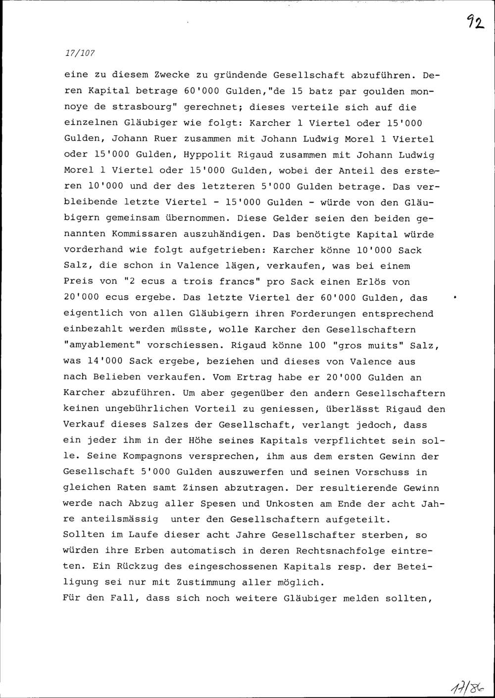 Schuldentilgungsvertrag zwischen Anton Fels und dessen Gläubigen