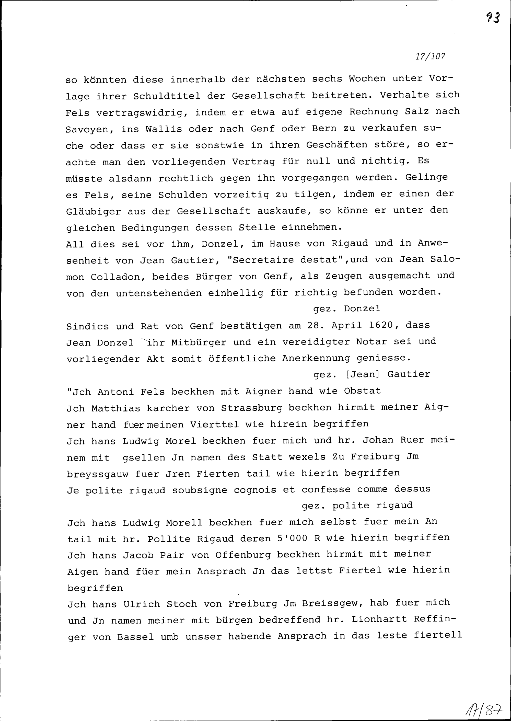 Schuldentilgungsvertrag zwischen Anton Fels und dessen Gläubigen