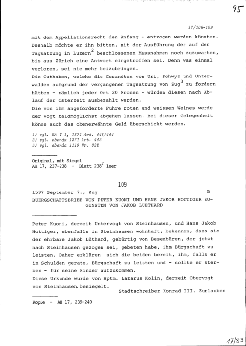 Bürgschaftsbrief von Peter Kuoni und Hans Jakob Hottiger zugunsten von Jakob Lüt...