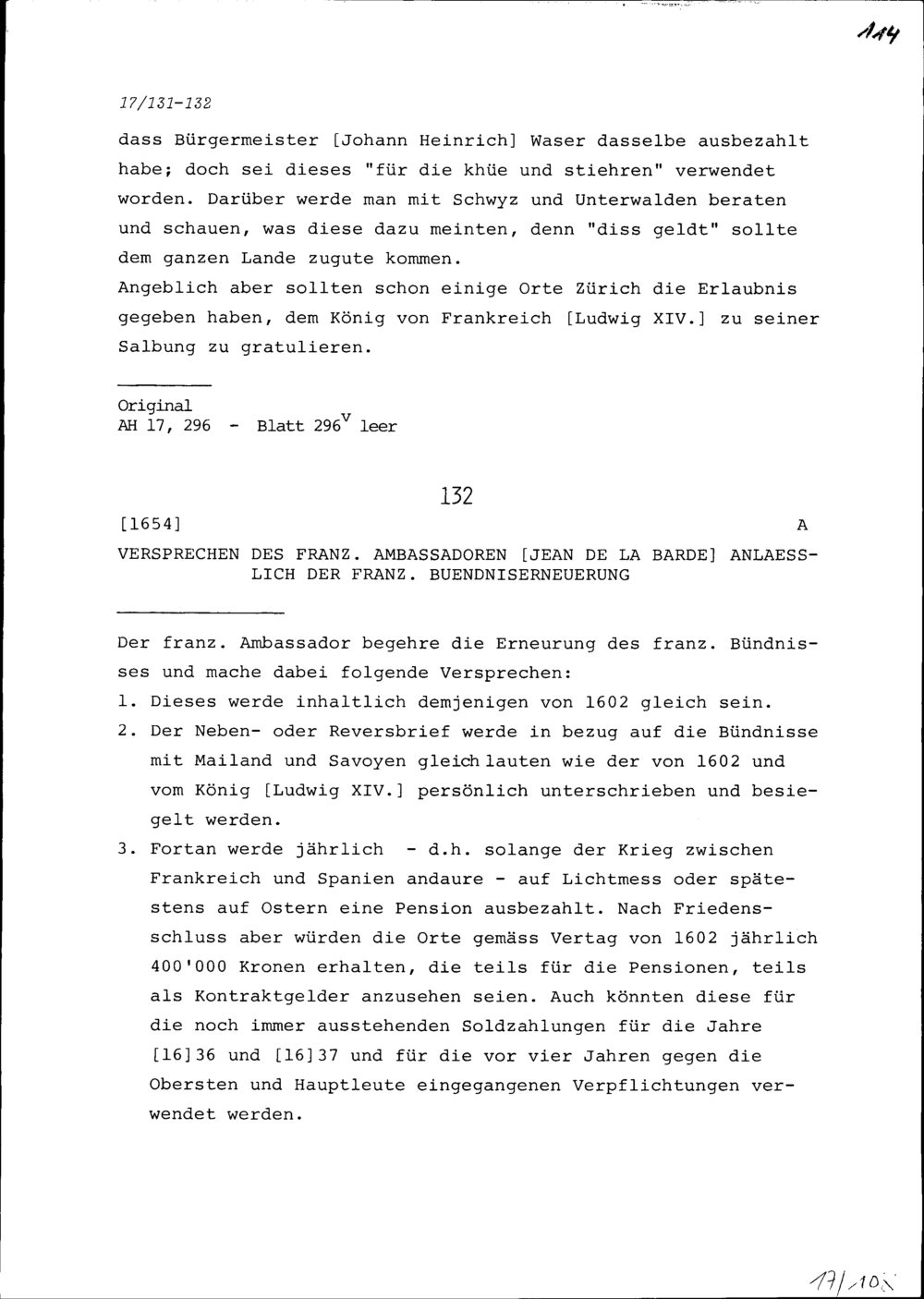 Versprechen von Jean de la Barde, Ambassador von Frankreich, anlässlich der französischen...