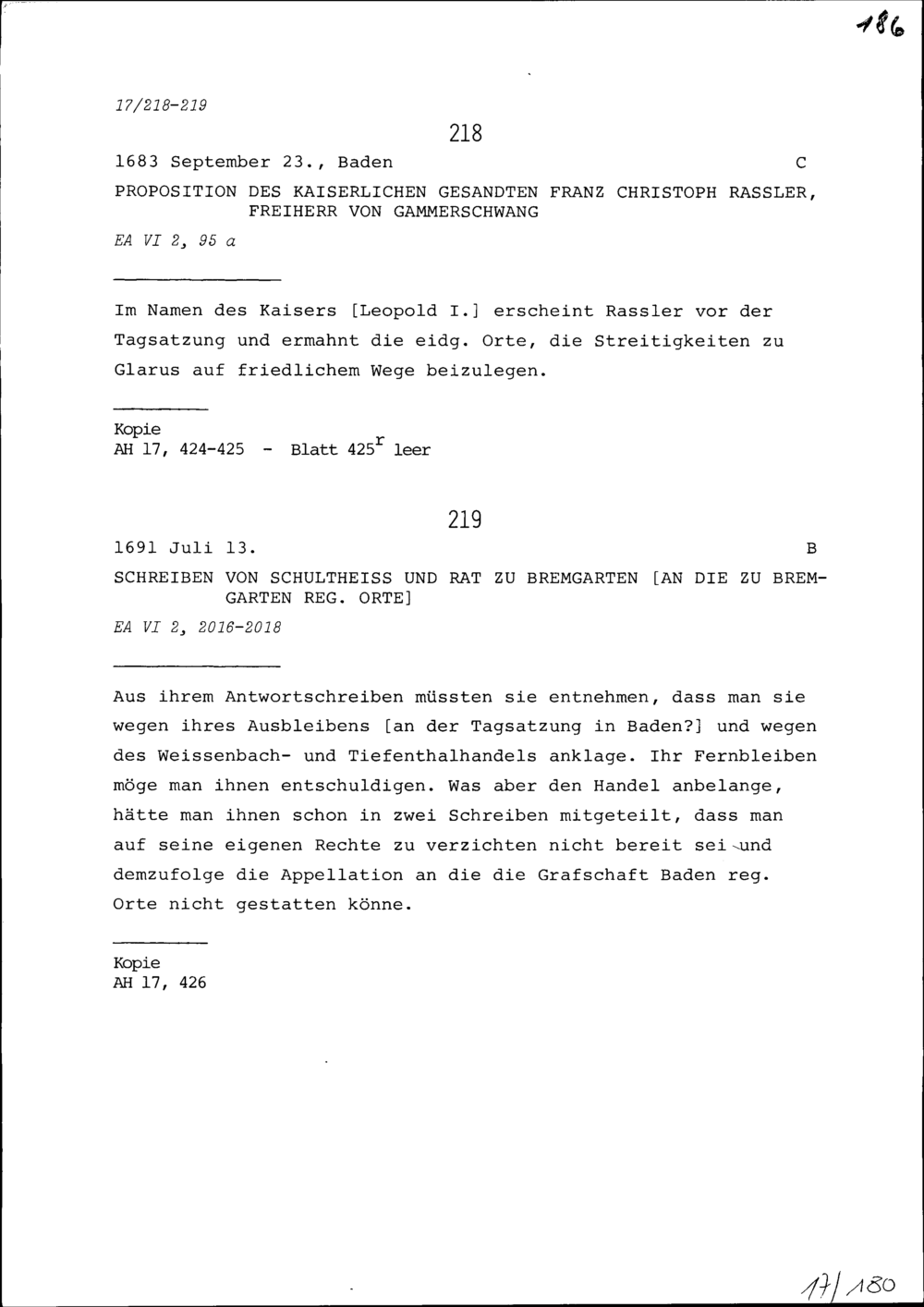 Proposition von Franz Christoph Rassler, Freiherr von Gammerschwang und kaiserlicher Gesandter