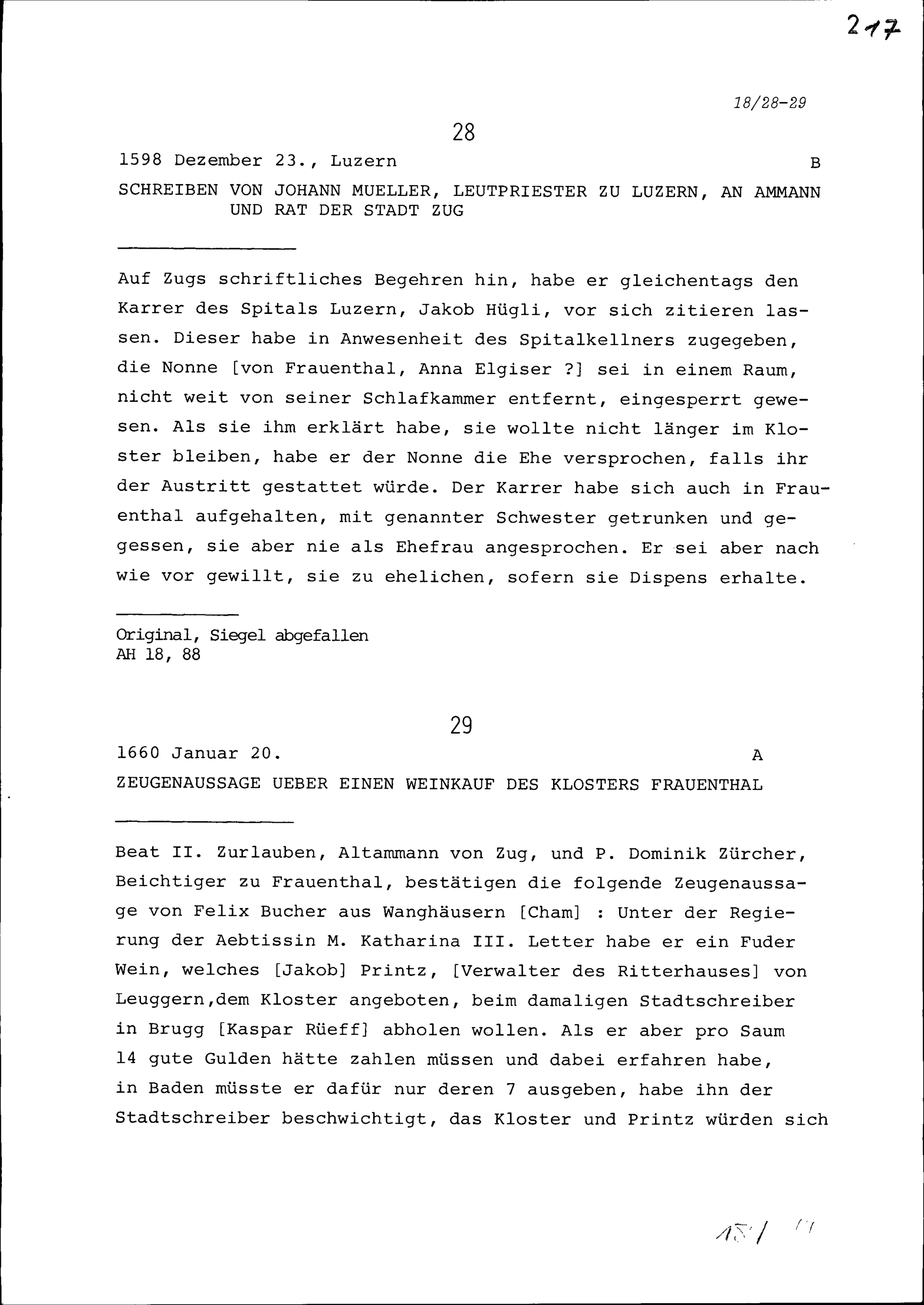 Schreiben von Johann Müller, Leutpriester in Luzern, an Ammann und Rat der Stadt...