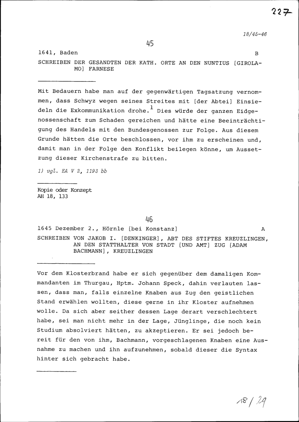 Schreiben der Gesandten der Katholischen Orte an Girolamo Farnese, Nuntius