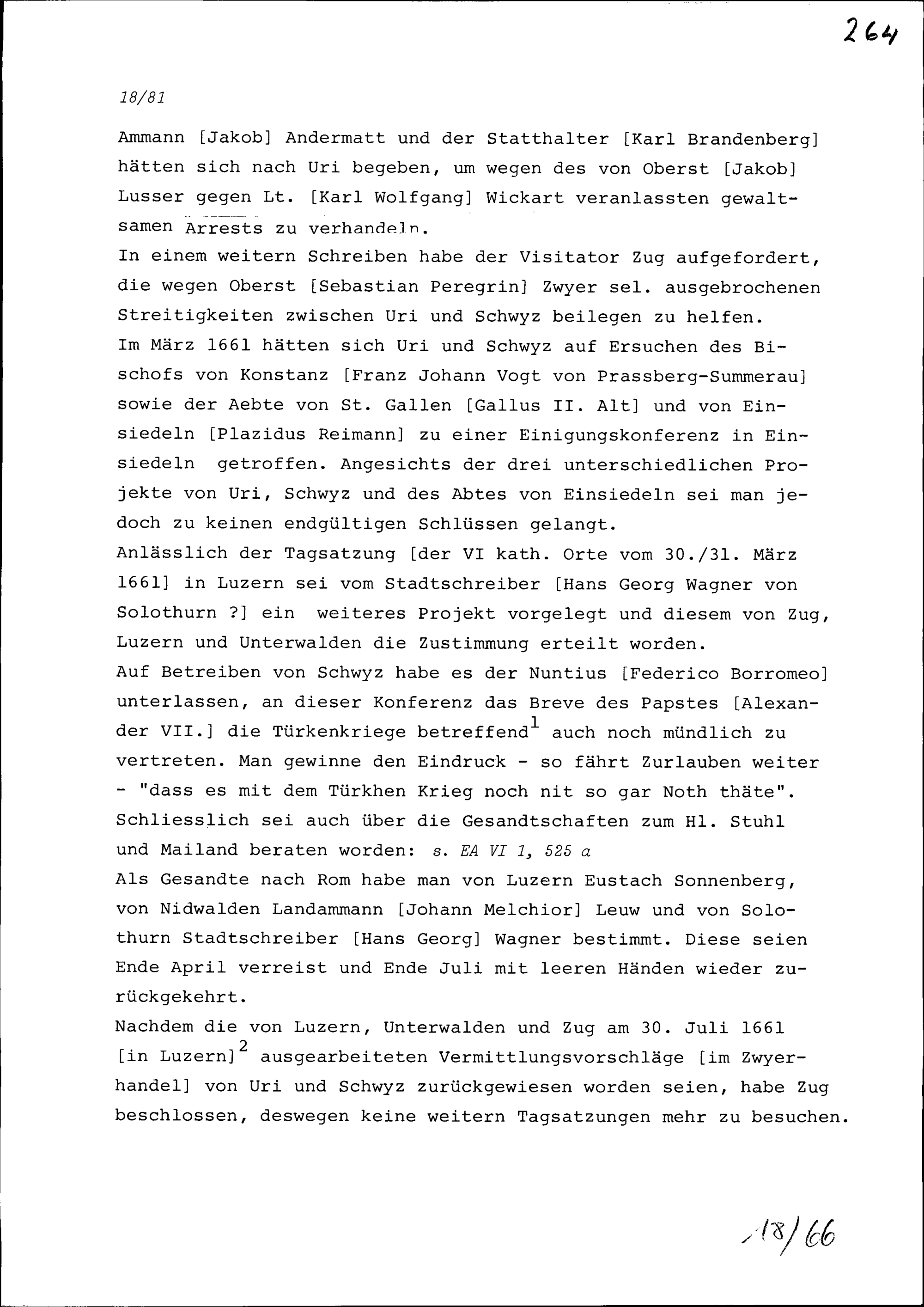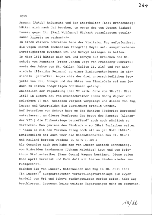 Notiz von Beat II. Zurlauben über die Beilegung des Zwyerhandels und anderes