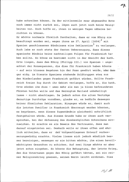Schreiben von Louis Le Fèvre de Caumartin, Ambassador von Frankreich, an die mit Spanien verbündeten Katholischen Orte