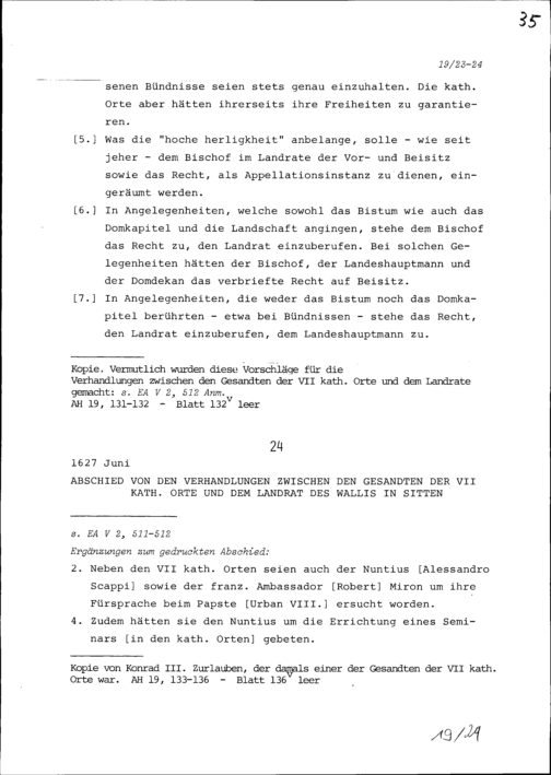 Abschied der Verhandlungen zwischen den Gesandten der Sieben Katholischen Orte und dem Landrat Wallis in Sitten