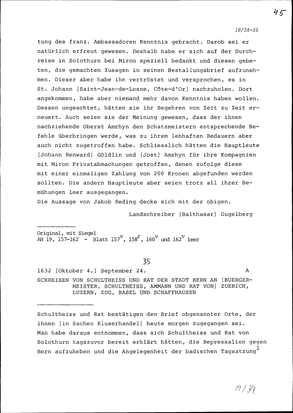 Schreiben des Schultheiss und Rats der Stadt Bern an Bürgermeister, Schultheiss,...