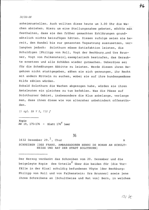 Schreiben von Henri de Rohan, Ambassador von Frankreich, an Schultheiss und Rat der Stadt Solothurn