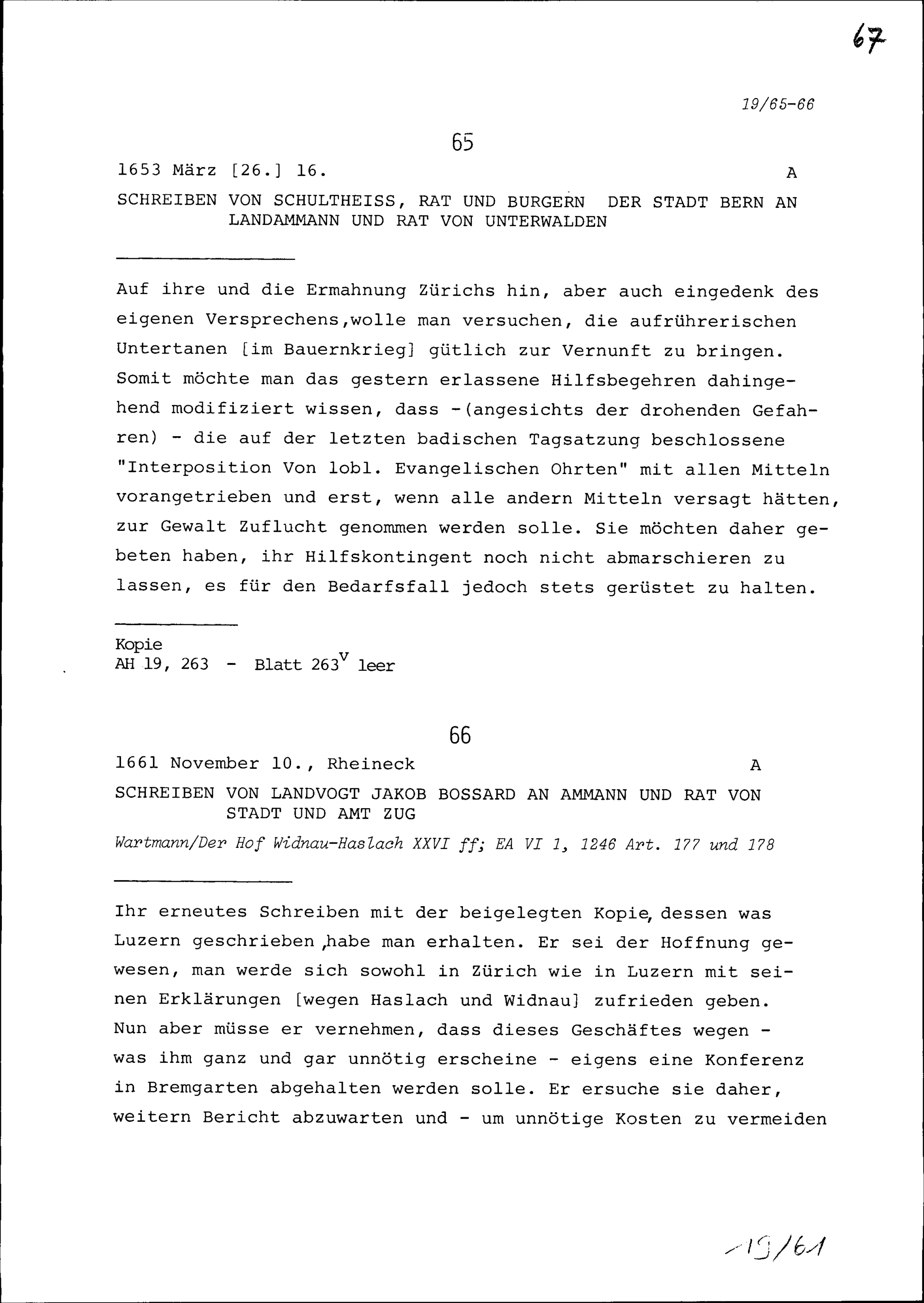 Schreiben des Schultheiss, Rats und der Burgern der Stadt Bern an Landammann und...