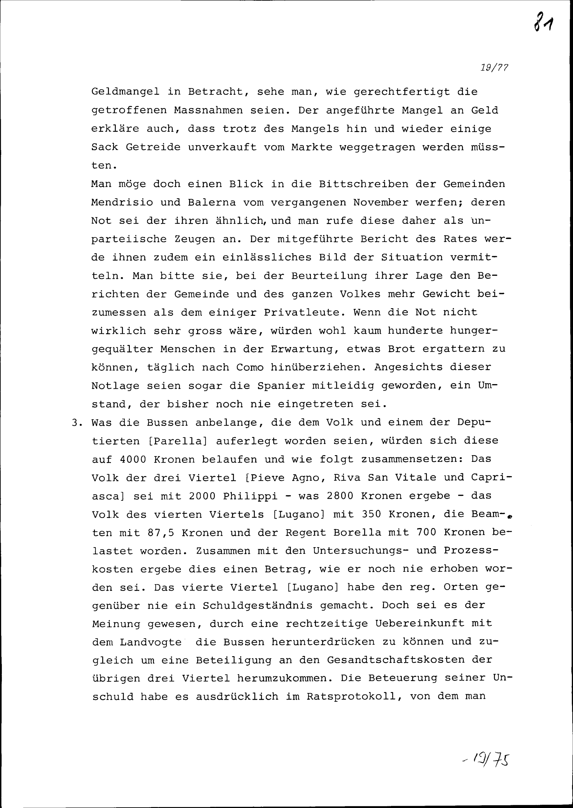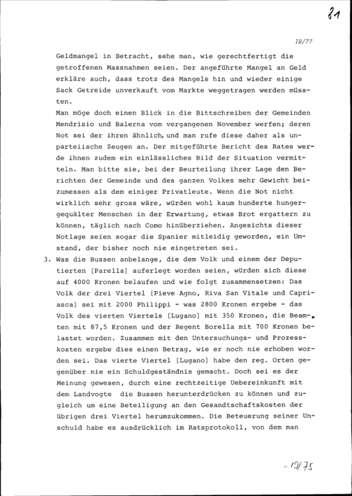 Rechtfertigung der Gemeinde Lugano vor einer Ratsdelegation von Zürich wegen der...