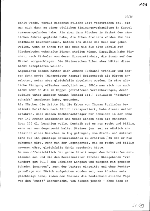 Schreiben von Konrad III. Zurlauben, Ammann, und Jakob Zürcher von Menzingen, Seckelmeister, samt Söhnen an Stadt- und Amtrat Zug um einen Ratsbeschluss gegen Hans Peter Steiner von Zürich
