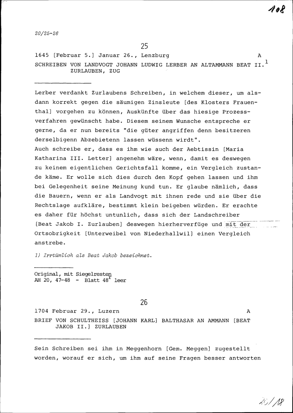 Schreiben von Johann Ludwig Lerber, Landvogt, an Beat II. Zurlauben, Altammann, Zug