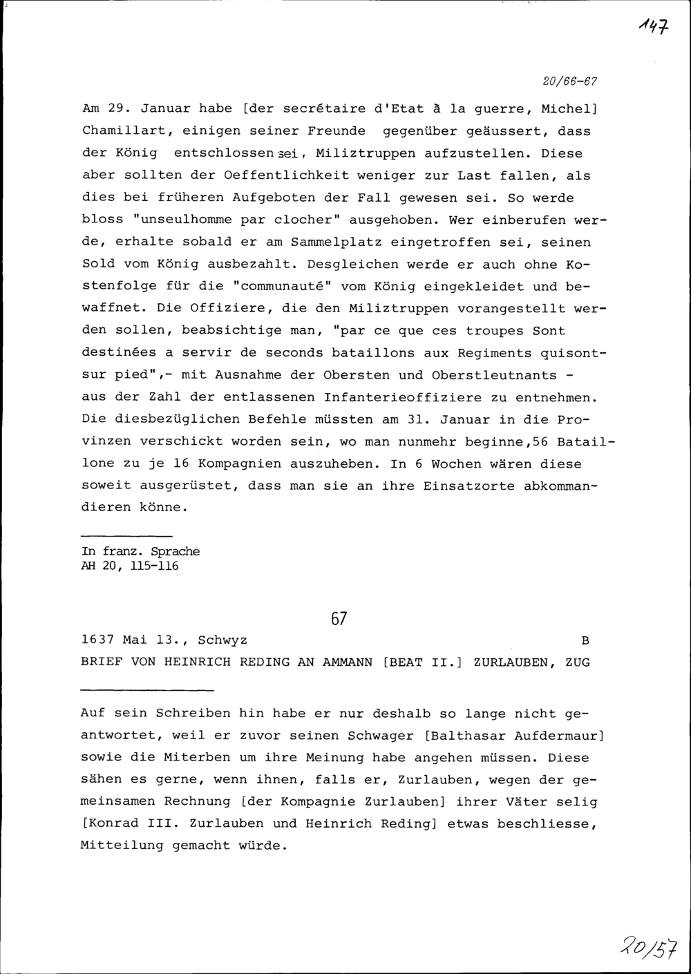 Schreiben von Heinrich Reding an Beat II. Zurlauben, Ammann, Zug