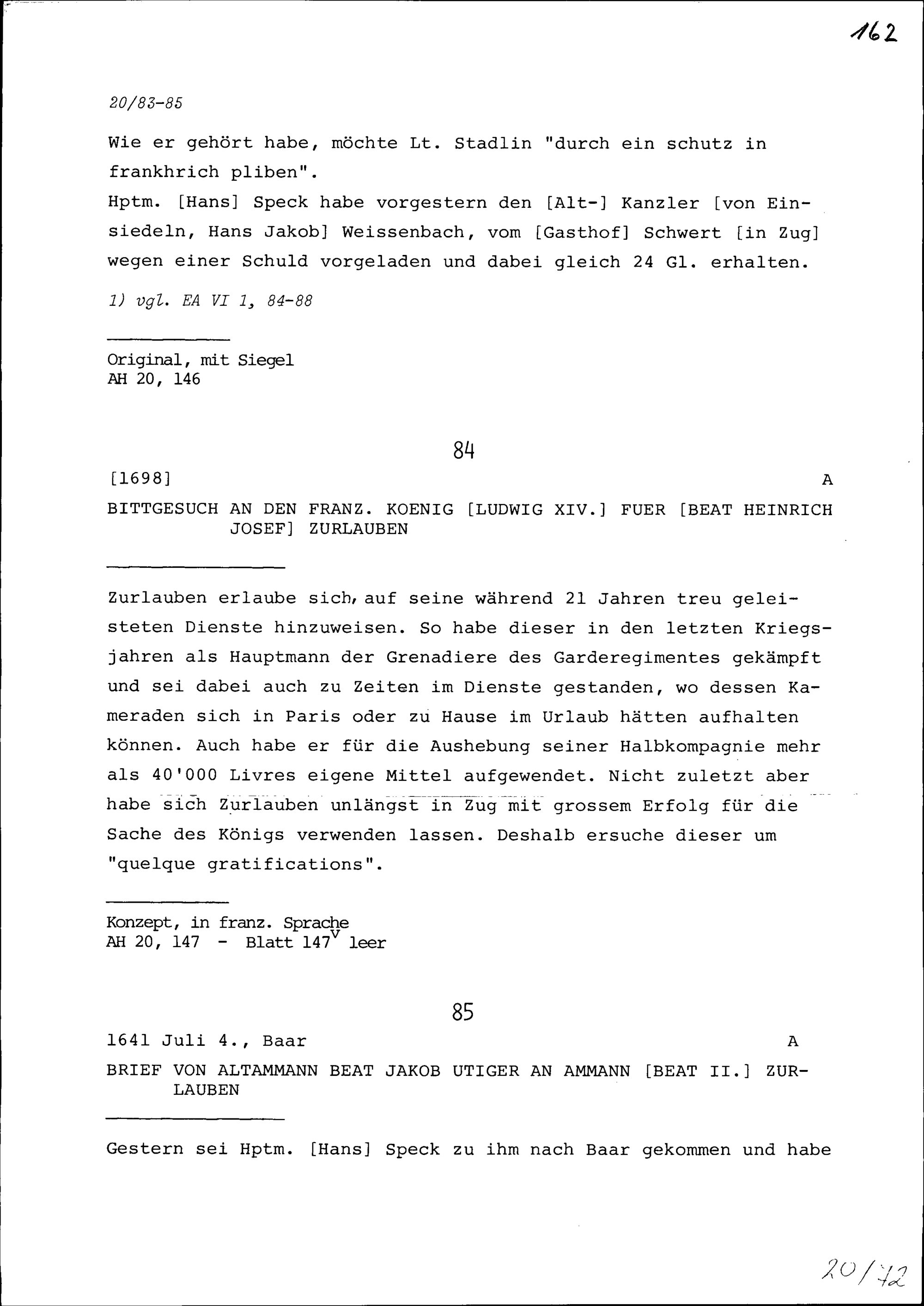 Bittgesuch an Ludwig XIV., König von Frankreich, für Beat Heinrich Josef Zurlaub...