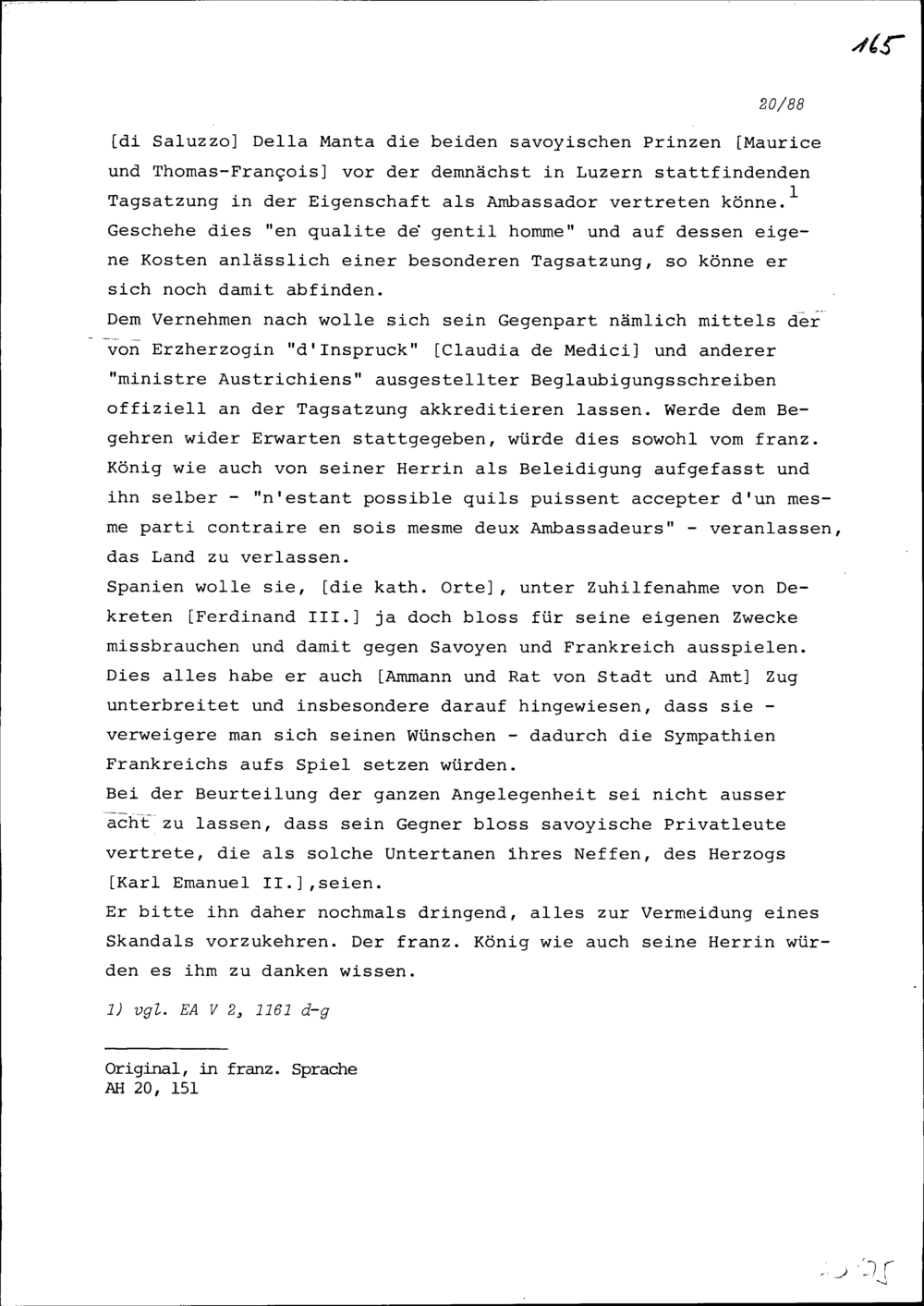 Schreiben von Valerio di Saluzzo, Conte della Manta, Ambassador von Savoyen, an Beat II. Zurlauben