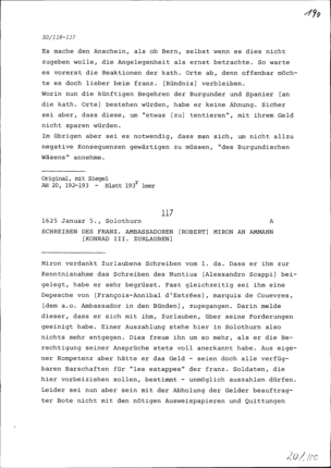 Schreiben von Robert Miron, Ambassador von Frankreich, an Konrad III. Zurlauben, Ammann